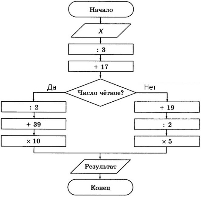 Выполните алгоритм, представленный на блок-схеме, если известно, что А=18.