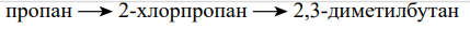 - взаимодействие хлорэтана с металлическим натрием