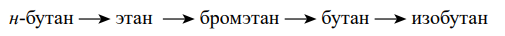 Из предложенного перечня выберите три вещества, которые могут быть получены в одну стадию из бутана: