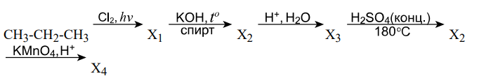 НСl, KOH(спирт), H2O(H+), H2SO4(140o), KMnO4(H2O, 25o)
