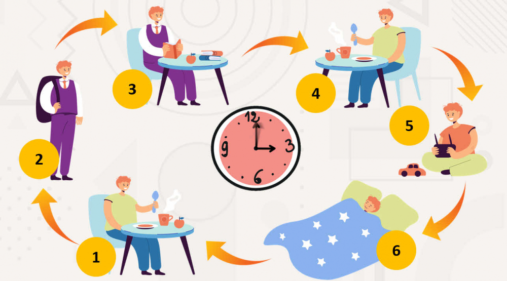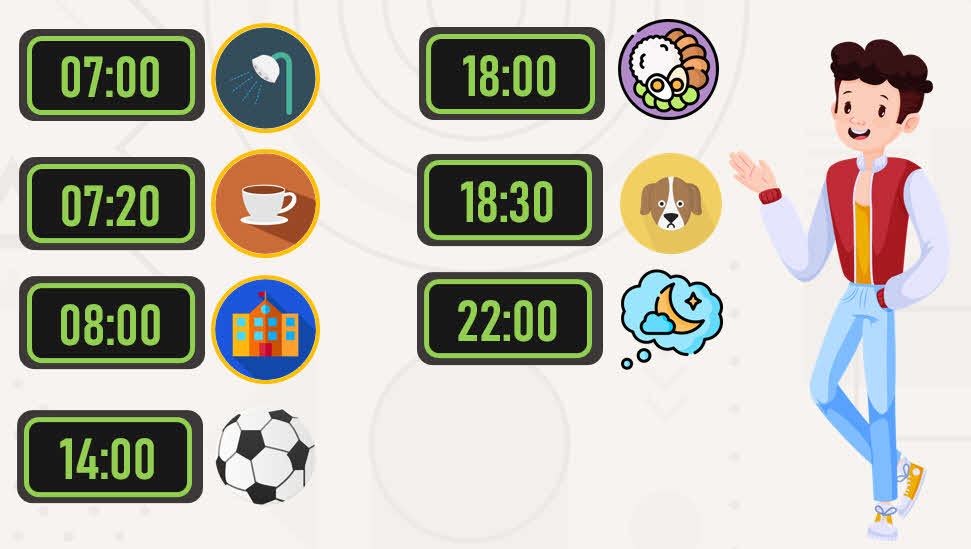 Das ist Peter. Wann macht er was? Ordnet zu.