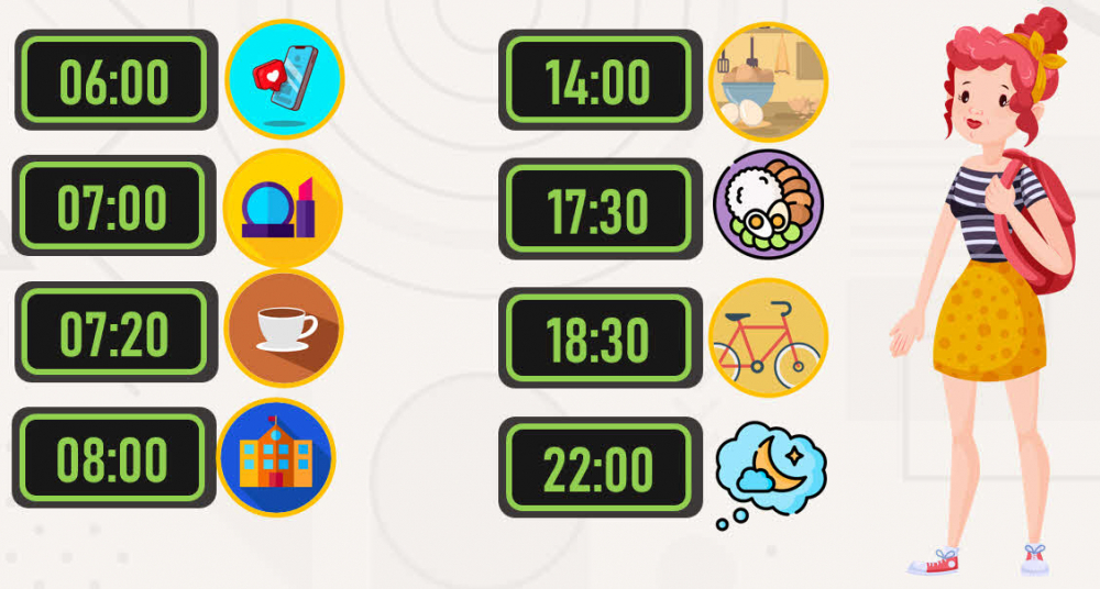 Das ist Heike. Wann macht sie was? Ordnet zu.