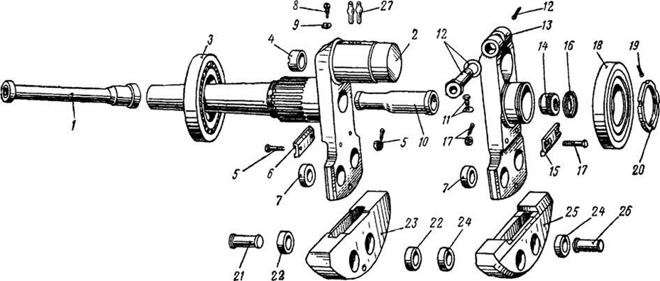 - Возвратно-поступательное перемещение коленвала во вращательное движение поршней