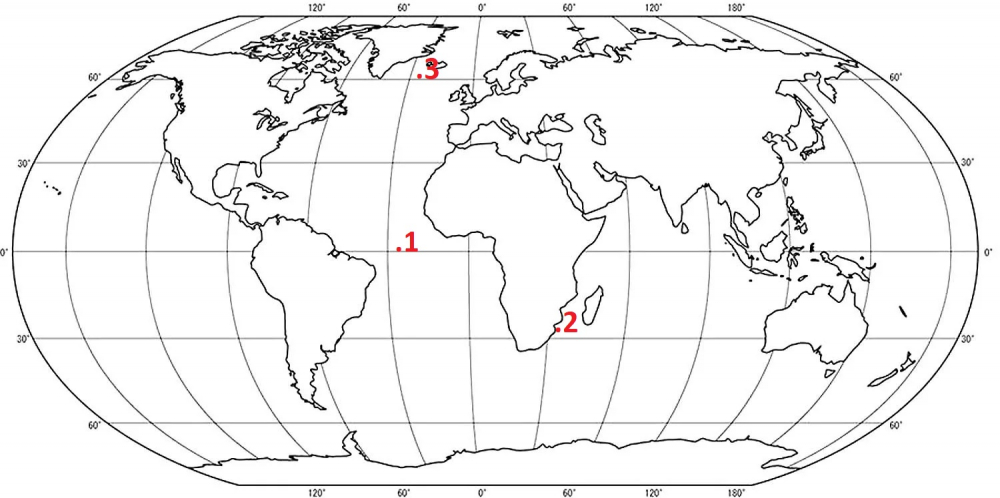 Расставьте точки в порядке повышения среднегодовой температуры воздуха в них. В ответе запишите номера точек без запятых, пробелов и других символов.