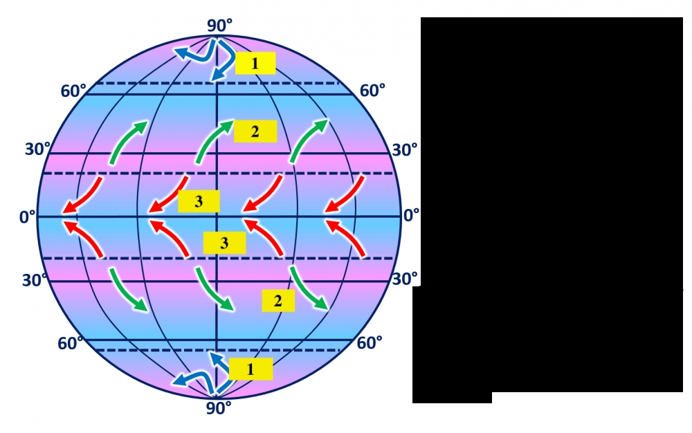 - у тропічних і полярних широтах (30 і 90 градусів)