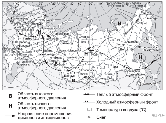 Карта погоды составлена на 18 апреля. В каком из показанных на карте городов на следующий день наиболее вероятно существенное потепление?