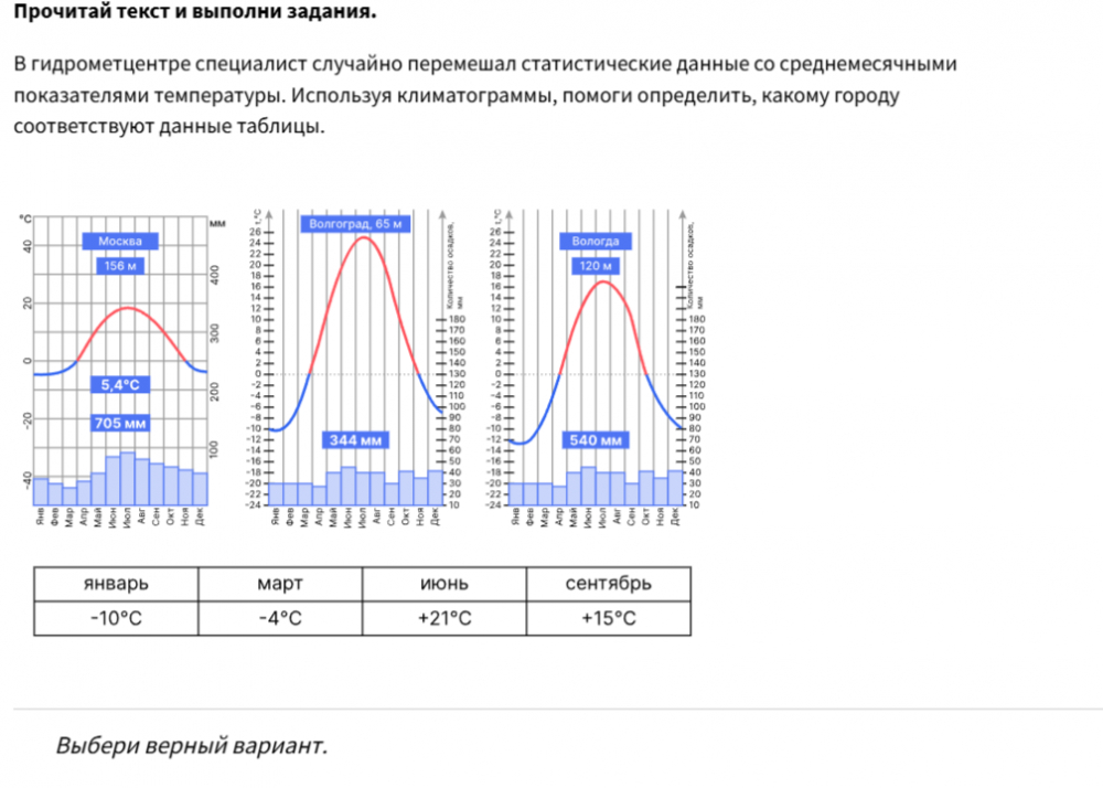 Выбери верный вариант ответа.