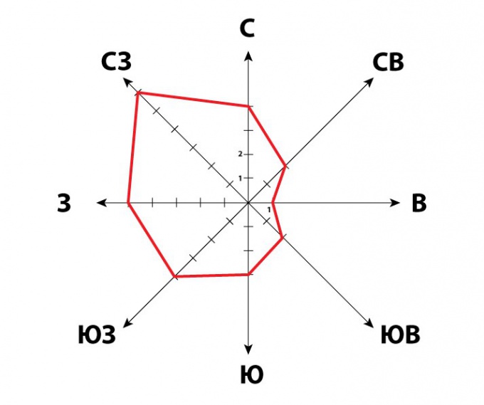 Откуда дул ветер,направление которого преобладает на этой розе ветров