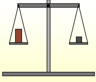 С помошью линейки уравновешены два тела. У какого из этих тел больше плотность? Выбери правильный ответ.