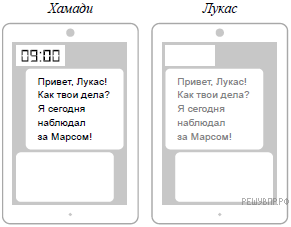 Хамади отправил Лукасу электронное сообщение в 09:00 по местному времени. Какое время будет отображаться в соответствующем окне на экране смартфона, когда Лукас получит сообщение от Хамади? Ответ дайте в формате числа, без пробелов и т.п. Например, 13.