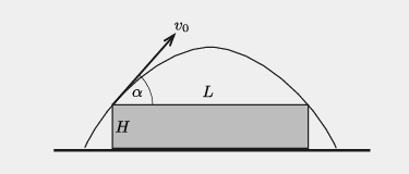 Балка прямоугольного сечения лежит на горизонтальной поверхности. Горизонтальная сторона прямоугольника равна L=2 метра, а его вертикальная сторона равна H=0,5 метра. С какой минимальной скоростью должен прыгнуть кузнечик, чтобы перепрыгнуть балку?