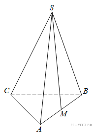 В правильной треугольной пирамиде SABC точка M – середина ребра AB, S – вершина. Известно, что BC = 4, а площадь боковой поверхности пирамиды равна 45. Найдите длину отрезка SM.