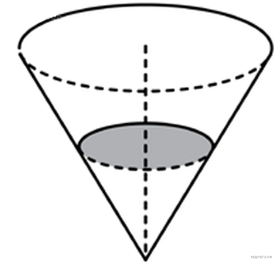 В сосуде, имеющем форму конуса, уровень жидкости достигает высоты. Объём жидкости равен 80 мл. Сколько миллилитров жидкости нужно долить, чтобы полностью наполнить сосуд?