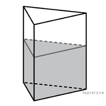 В сосуд, имеющий форму правильной треугольной призмы, налили 2200 воды и погрузили в воду деталь. При этом уровень воды поднялся с отметки 25 см до отметки 27 см. Найдите объем детали. Ответ выразите в
