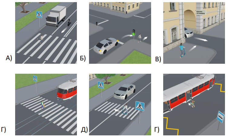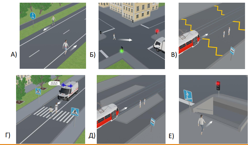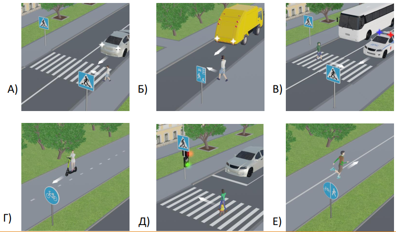 Отметьте ситуации, где изображены «дорожные ловушки» – ситуации, когда соблюдение пешеходом ПДД не гарантирует безопасность