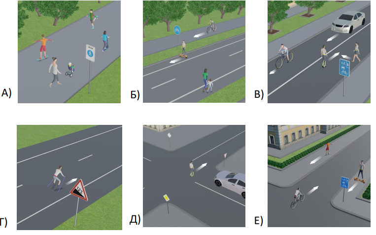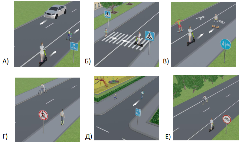 - Б. Подросток едет на гироскутере по обочине, несмотря на то, что рядом с дорогой есть велосипедная дорожка. Именно по ней пункт 24.1 ПДД РФ предписывает движение.