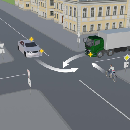 - грузовой автомобиль, легковой автомобиль, велосипедист
