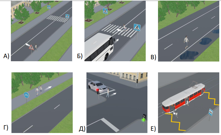 Отметьте ситуации, где пешеходы нарушают требования Правил дорожного движения