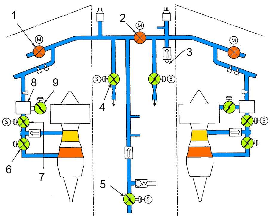 - Система топливопитания двигателей и ВСУ