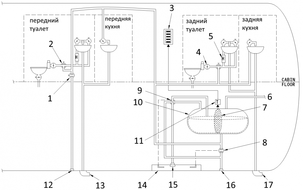 Укажите на схеме кран заправки водяного бака.
