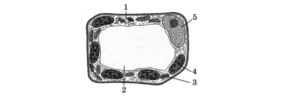 Клітини рослин відрізняються від тваринних клітин наявністю певних компонентів. Якими цифрами позначені компоненти що є лише в рослинних клітинах