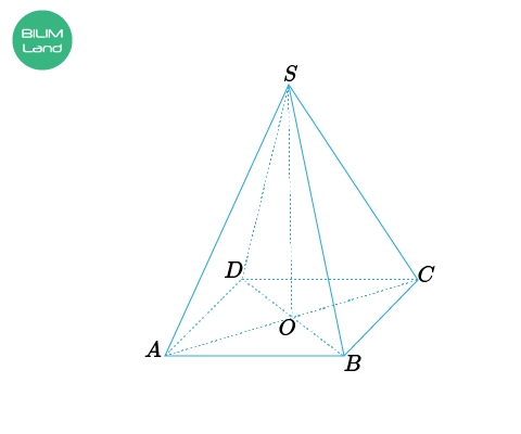 Cуреттегі пирамиданың табаны квадрат. SO=OB болса, SB қыры табан қабырғасына қалай орналасқан