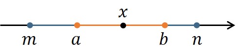 \(P\left(a\le x\le b\right)=\frac{a+b}{m+n}\)