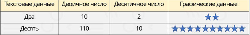 - Числовыми данными можно закодировать информацию о количестве предметов или порядковом номере предмета.