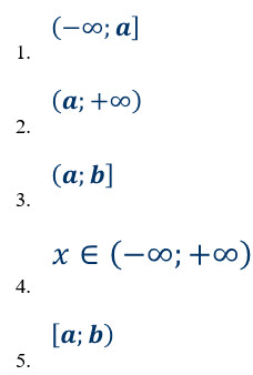 Множества чисел, удовлетворяющих неравенствам x > a или x < a, называют ...