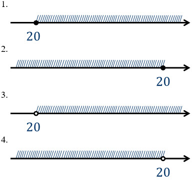 Как изображается на координатной прямой множество чисел, удовлетворяющих неравенству y > 20?