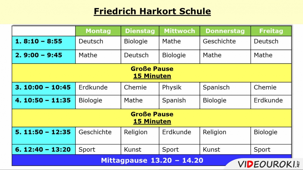 - Der Unterricht beginnt jedenTag um 8.10 Uhr.