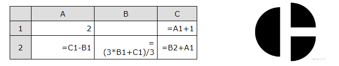 Какое число должно быть записано в ячейке B1, чтобы построенная после выполнения вычислений диаграмма по значениям диапазона ячеек A2:С2 соответствовала рисунку? Известно, что все значения диапазона, по которым построена диаграмма, имеют один и тот же знак.