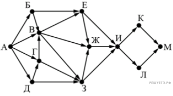 На рисунке представлена схема дорог, связывающих города А, Б, В, Г, Д, Е, Ж, З, И, К, Л, М.
