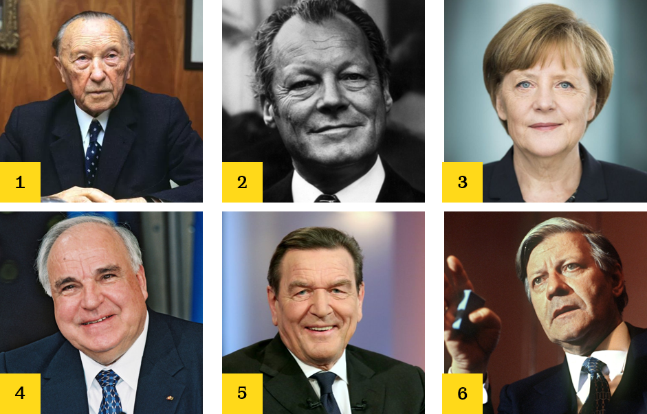 Ordnet die Namen der Kanzler Deutschlands und ihre Porträts zu!