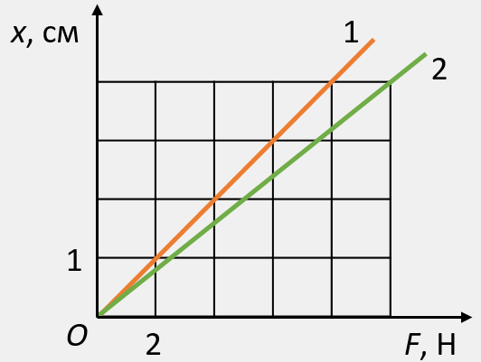 На рисунке приведены графики зависимости абсолютного удлинения двух пружин от приложённых к ним сил. Жёткости пружин, состоящие из последовательно и параллельно соединенных пружин 1 и 2, равны: