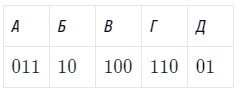 Определи набор букв, который закодирован двоичной строкой 1000110110110. Все буквы в последовательности разные.