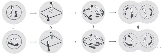 5) расположение попарно гомологичных хромосом в зоне экватора
