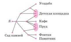 План тропинок в парке представляет собой дерево. Ворота в парке обозначены вершиной S. Сколько цепей ведет из вершины S к пруду?