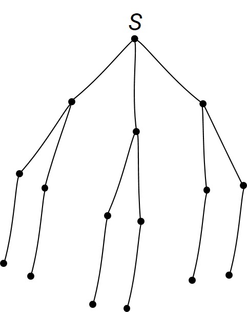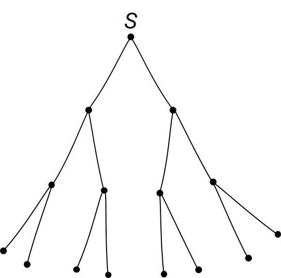 На рисунке изображено дерево некоторого случайного эксперимента с началом в точке S. Сколько элементарных событий в этом эксперименте?