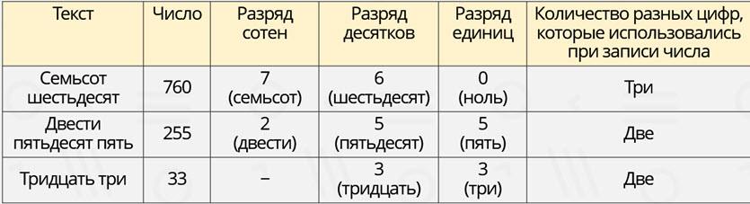 - Значение числа равно сумме значений всех цифр, из которых оно состоит.