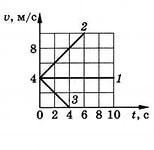 На рисунке представлены зависимости скорости от времени. Установите соответствие между графиками и утверждениями