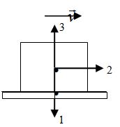 На рисунке показаны силы, действующие на тело, движущегося со скоростью . Укажите направление силы тяжести?