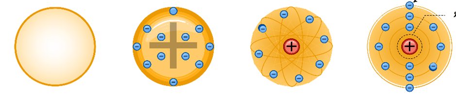 На рисунке представлены модели атомов. Какой цифрой отмечена модель атома Томсона?