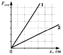 На рисунке представлены графики 1 и 2 зависимости модулей сил упругости от деформации для двух пружин. Отношение жесткостей пружин k1 /k2, равно: