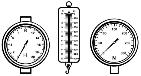 Определите цену деления динамометра с наименьшим пределом измерения. Ответ запишите без размерности.