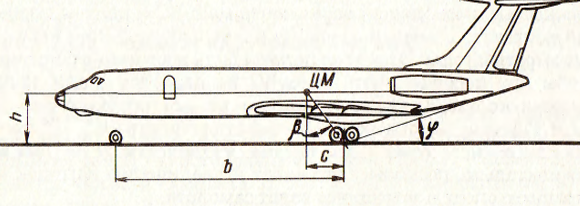 - от установочного угла и угла выноса основных опор шасси относительно центра тяжести.