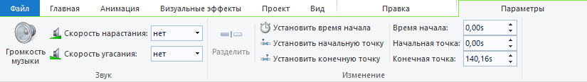 Как называется раздел на вкладке «Параметры», который предназначен для установки времени начала воспроизведения, начальной и конечной точки. Ответ введите заглавными буквами.