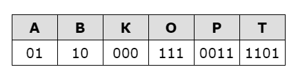 В этом сообщении зашифрован пароль — последовательность русских букв. В пароле использовались только буквы А, В, К, О, Р, Т; каждая буква кодировалась последовательностью двоичных символов по следующей таблице.