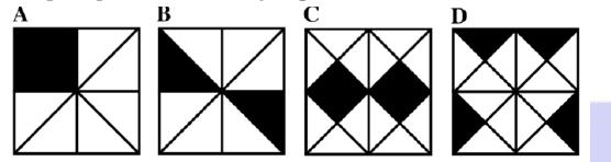 Berilgan 4 ta kvadratning qaysi birida qora rang ko`proq nisbatda bo`yalgan?