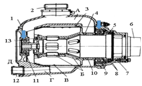 - элементом между корпусами компрессоров для увлечения надежно работы двигателя.
